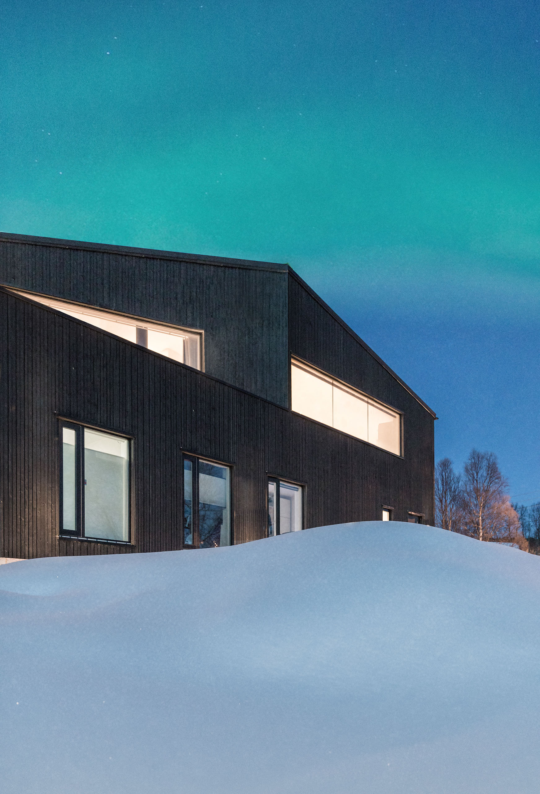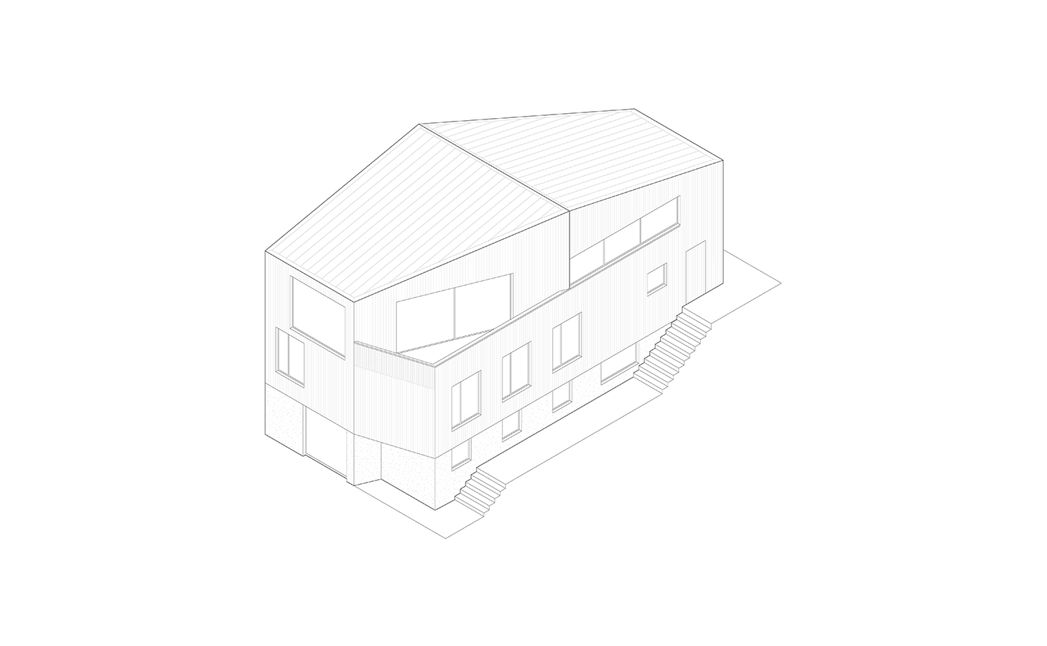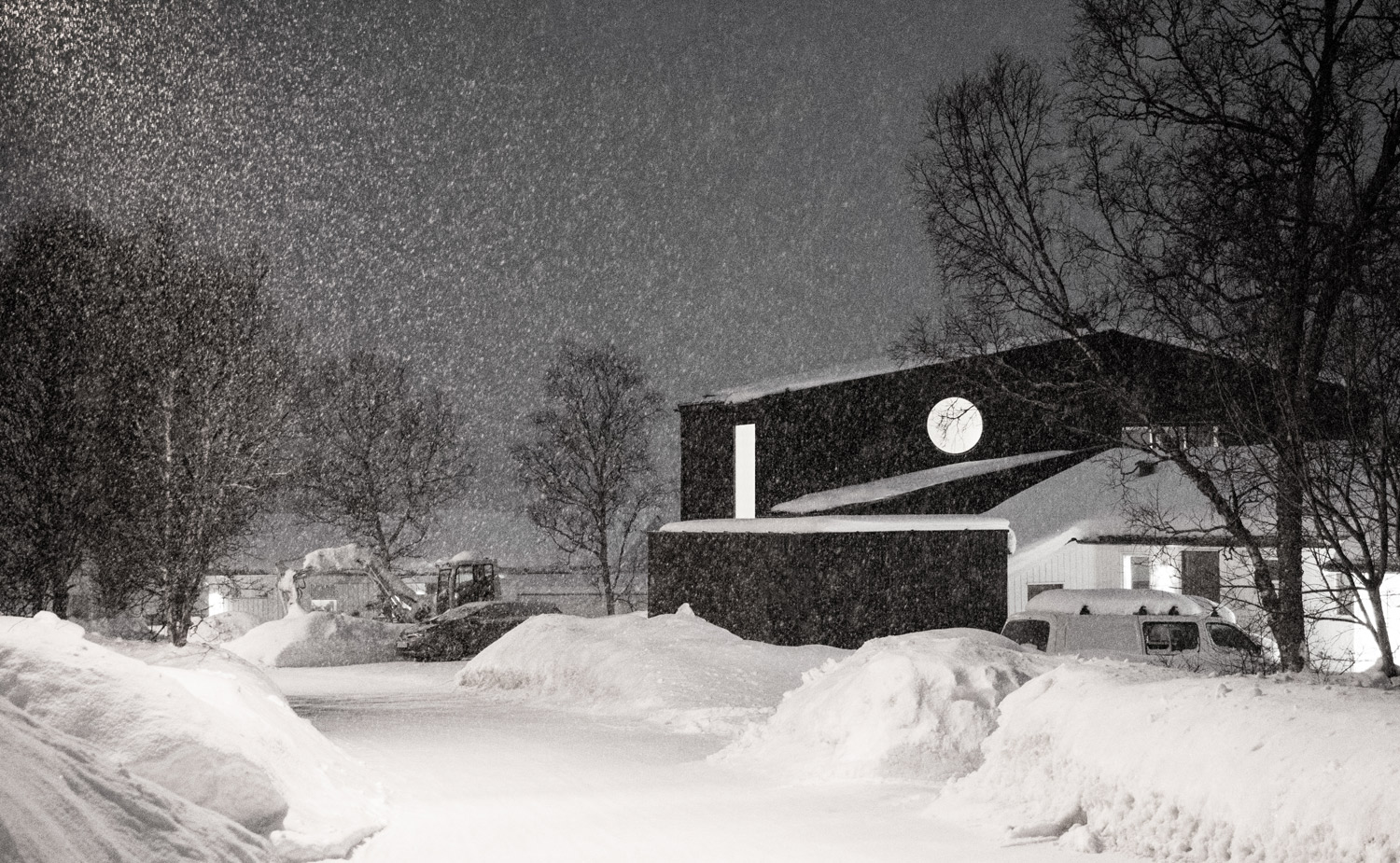 The plot is placed in a quiet suburban neighbourhood at the southwest of Tromsøya, with a beautiful view overlooking Kvaløysletta and its mountains behind. The project is for a private client whose request is to have 2 floors for his home and a ground floor for smaller rental apartments. The entrance is in the intermediate level, where the bedrooms and recreational rooms are. The beauties of the surrounding landscape are best visible from the top floor, where the living room and the kitchen find their separate spaces, organized around a structural and functional volume. It is covered by a pitched roof with double inclination, to fit the local regulations and to better harmonize with the neighbouring houses. The mass of the top floor is modelled through subtractions; at the south, the wall bends to allow the roof to be lowered and aligned with the one of the neighbouring house, at the north it opens up for a small terrace in the direction of the best views.