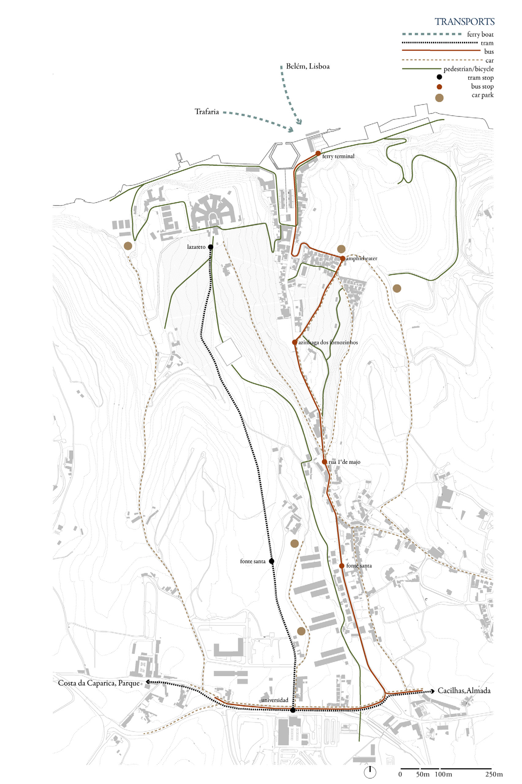 Our design approach considers Porto Brandao as a potential strong urban “catalyst” in the suburbs of Lisbon. Because of its characteristics and specific needs, Porto Brandao will gain a new centrality working as an activator of new urban dynamics on the outro lado of Lisbon’s area, assisting the metabolic transformation of the city itself. This idea can be expanded to other possible new poles working as a net generating osmotic dynamics that transform all into a healthier organism. Being on the other side is what defines the need of having a strong identity, enhancing relations with the city.
